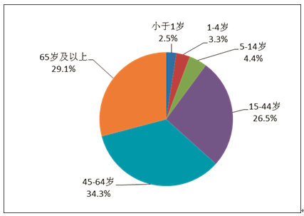 2019年藥品不良反應(yīng)/事件報(bào)告中,男女患者比為0.86:1,女性略多于男性。14歲以下兒童患者占10.2%;65歲及以上老年患者占29.1%(圖5)。