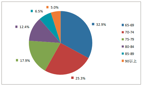 2019年老年患者藥品不良反應(yīng)/事件報(bào)告中,男女患者比為0.95:1。老年患者年齡分布中65-69歲老年患者報(bào)告占32.9%,70-74歲老年患者報(bào)告占25.3%(圖15)。