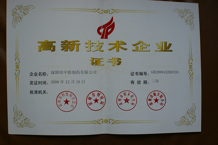 Zhonglian pharmaceutical has won the honorary title of 2018 high and new technology enterprise.